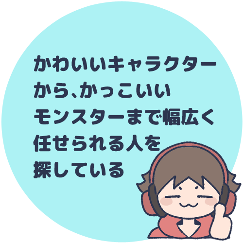 かわいい女の子キャラクターやマスコットキャラクターから、迫力のあるかっこいいモンスターイラストまでなんでも描ける対応力が強みです!