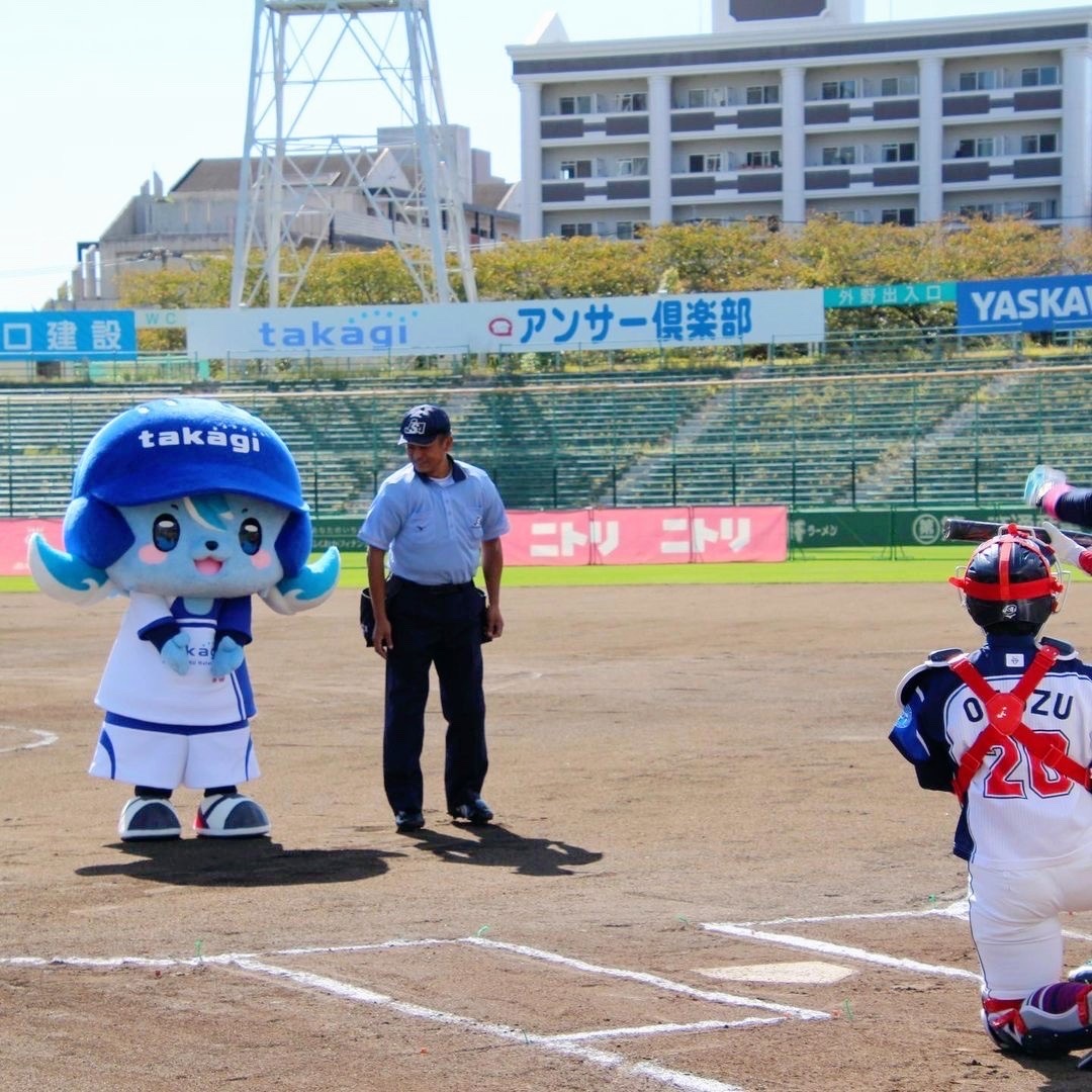 お披露目日には球技場で着ぐるみも登場し、始球式ではピッチャーも務めました。