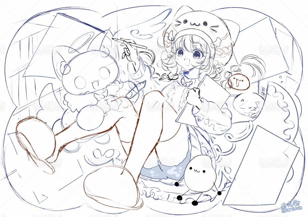 実際にご依頼をいただいた際には、基本的に上記の流れ(ラフ→カラーラフ→清書)とさせていただいております。