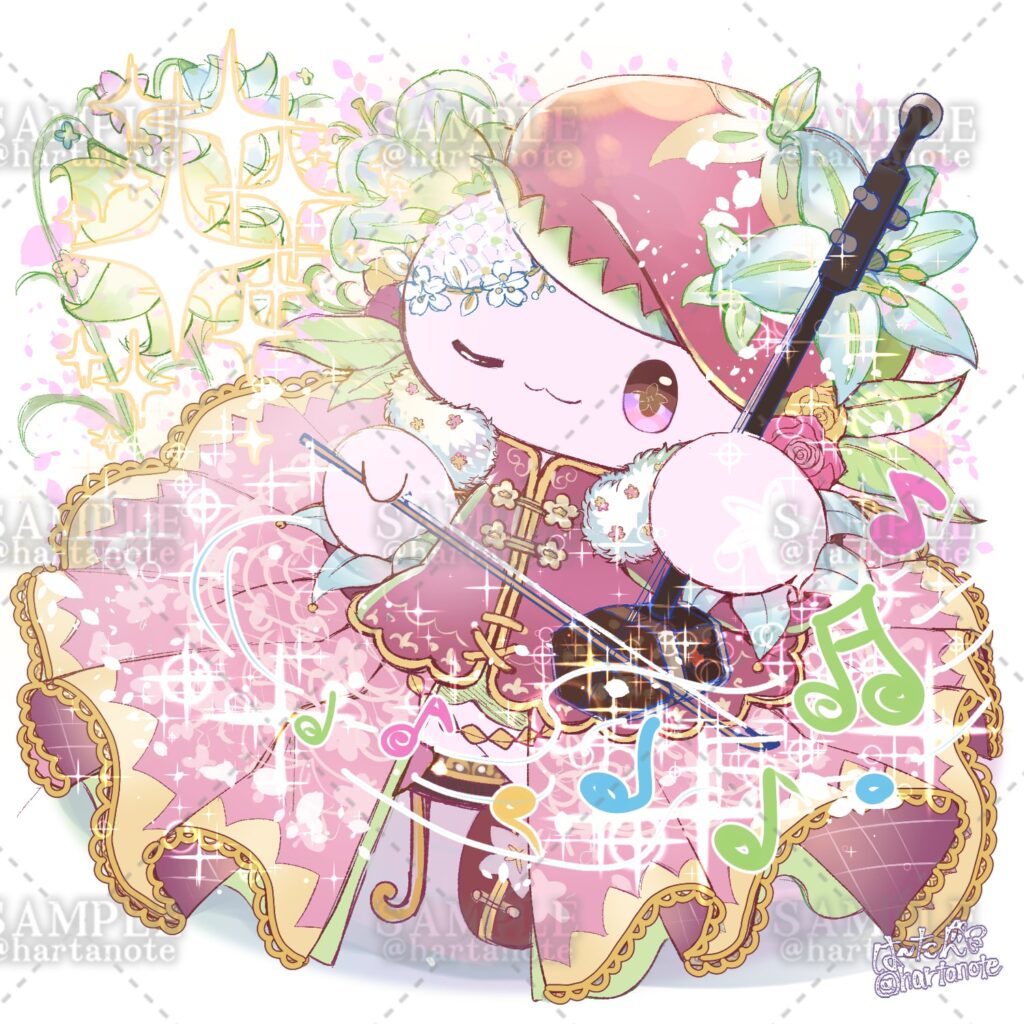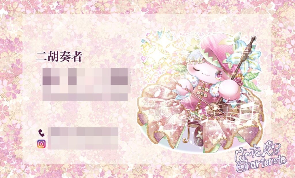 二胡という楽器の演奏者様より、「二胡を弾く妖精を作りたい」「その妖精を使った名刺も作りたい」とのご依頼をいただきました。