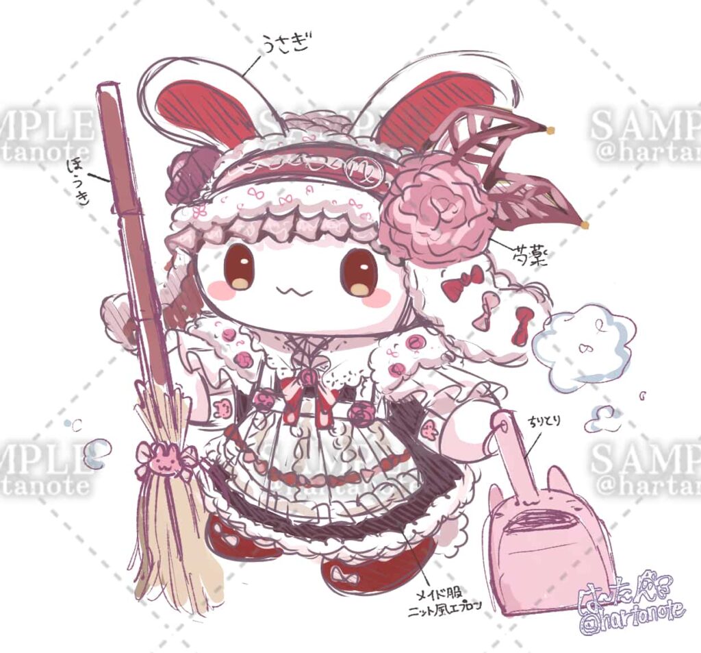 ご希望の衣装のメイド服をベースに、箒やチリトリなどのお掃除アイテムを取り入れて制作。