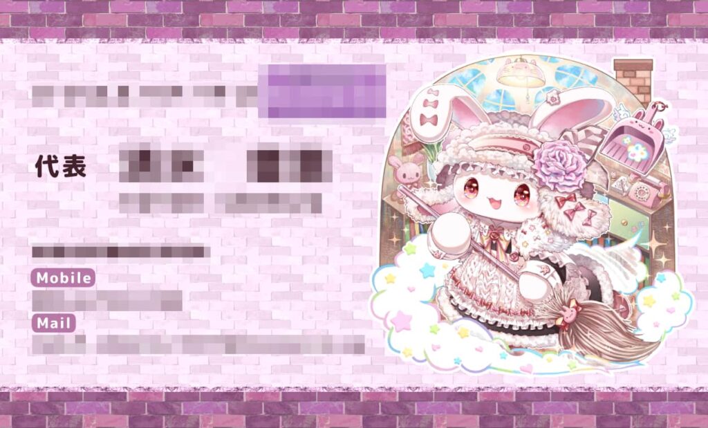 イラスト完成後は、その妖精を使用した名刺のデザイン・発注・完成品のお渡しまでを一貫して担当。さらに、活動の幅を広げていただけるよう、JPEGデータと背景透過のPNGデータの両方を納品いたしました。