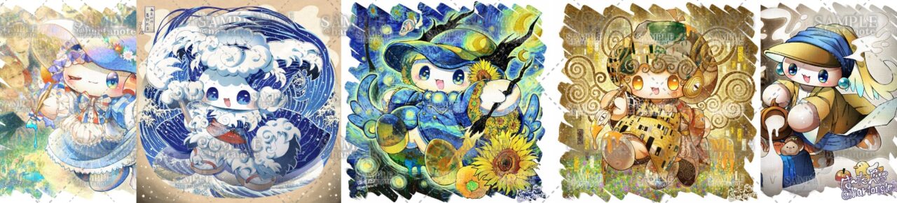 ゴッホ、クリムト、フェルメール、葛飾北斎、ルノワールといった世界的な画家たちを題材に制作した『ふんわり妖精』シリーズ。