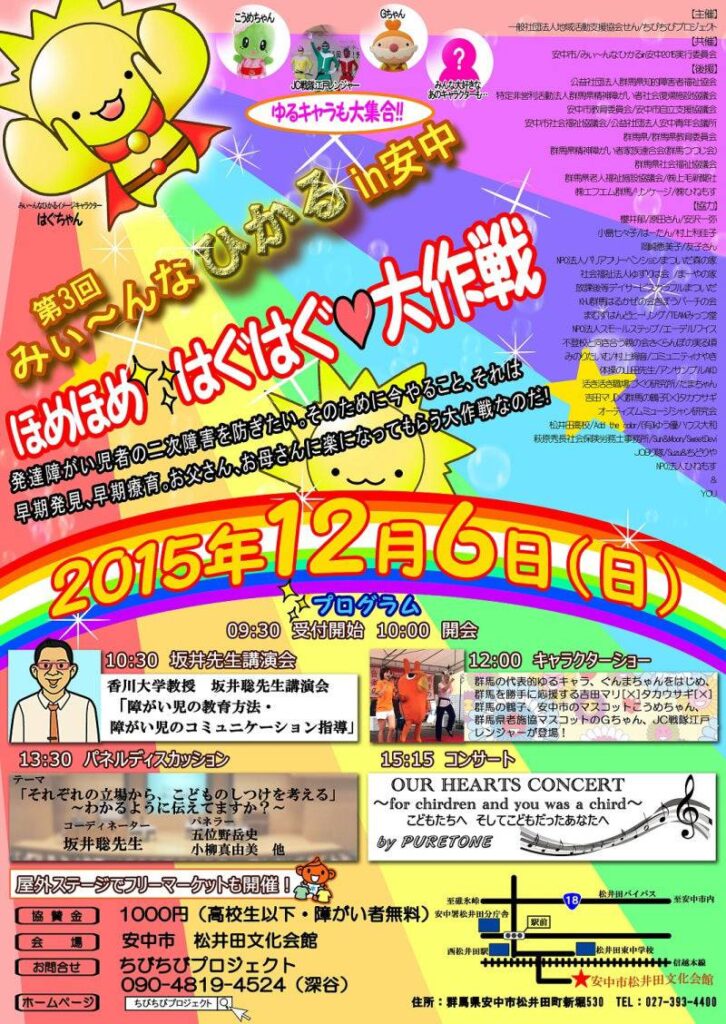 群馬県安中市で開催された福祉イベント「みぃ〜んなひかる in 安中」のイメージキャラクター『はぐちゃん』をデザインしました。